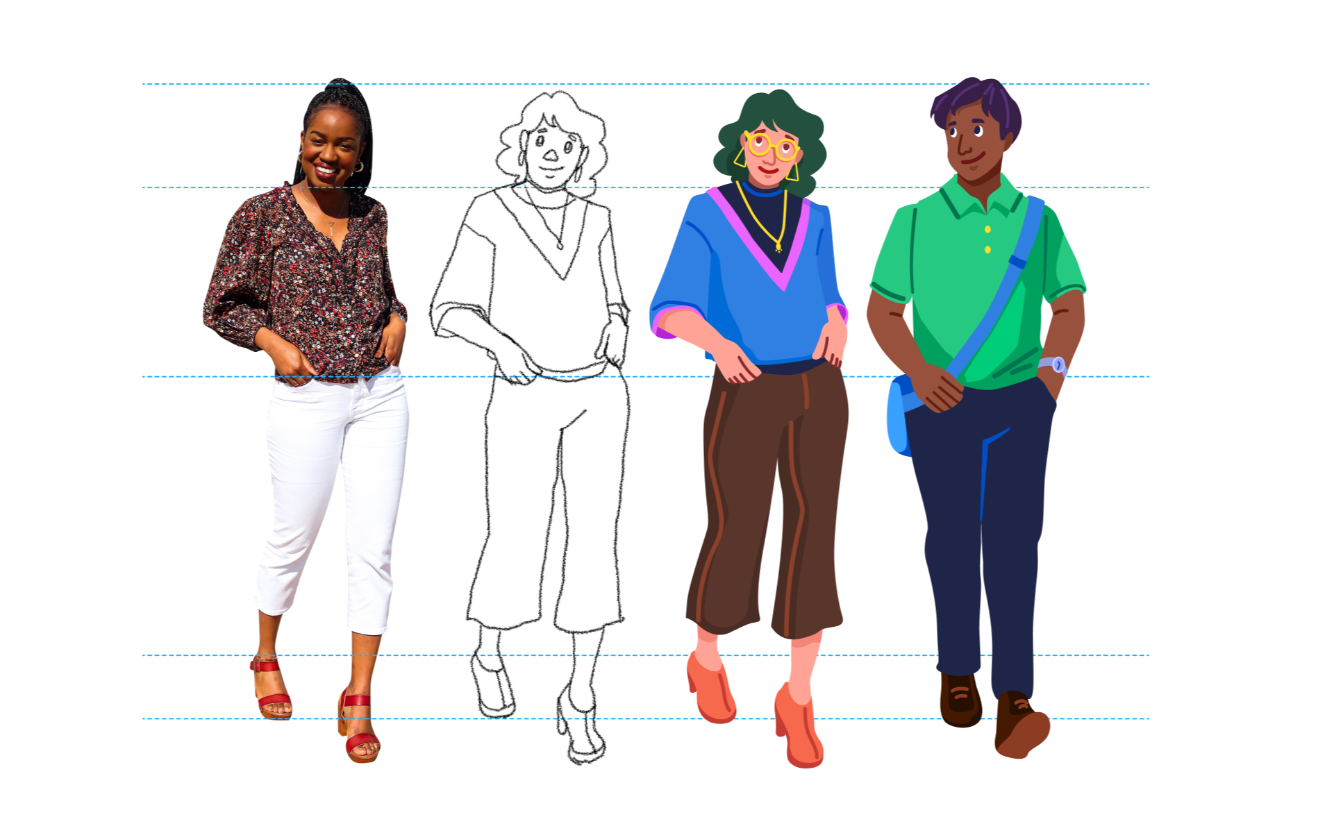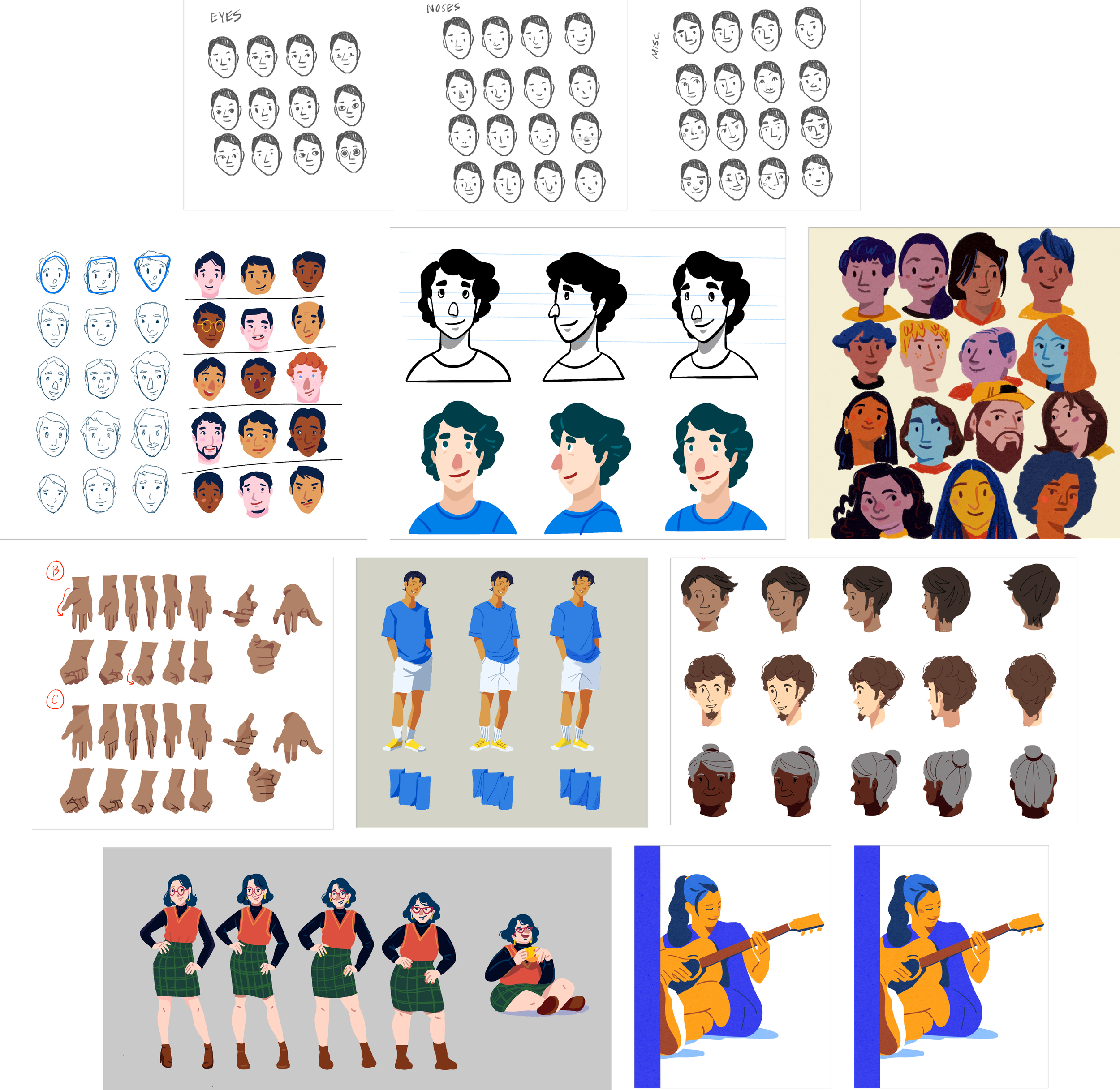We created comprehensive guidelines for illustrating people. These guidelines detailed how to abstract elements such as facial expressions, body language, and clothing styles, while also ensuring diverse representation in our illustrations.