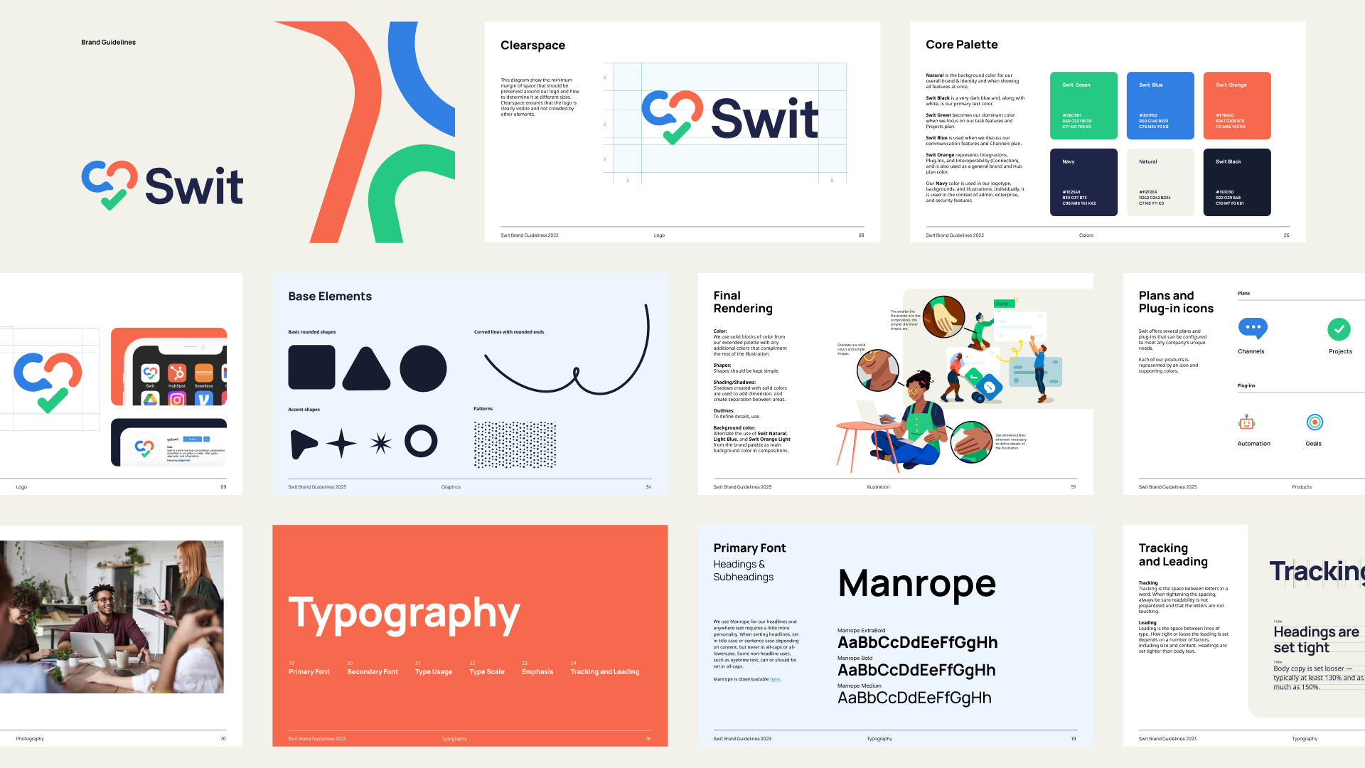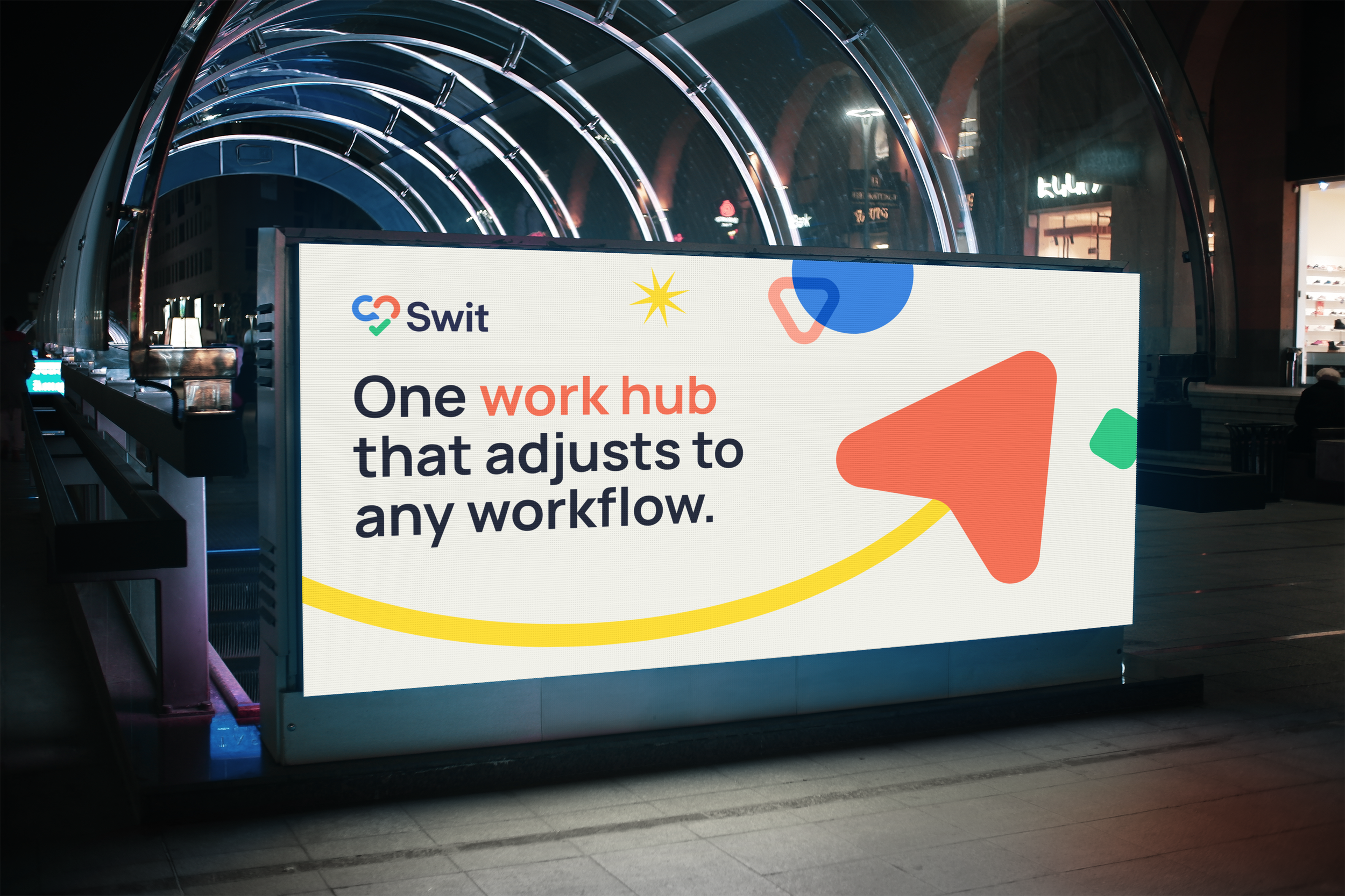 The updated Swit logo integrates the core functions of chat, task management, and integrations, highlighted by blue, green, and orange colors. The individual shapes merge to form a heart, preserving a key element from the original design that represents the human connection fostered through collaboration.